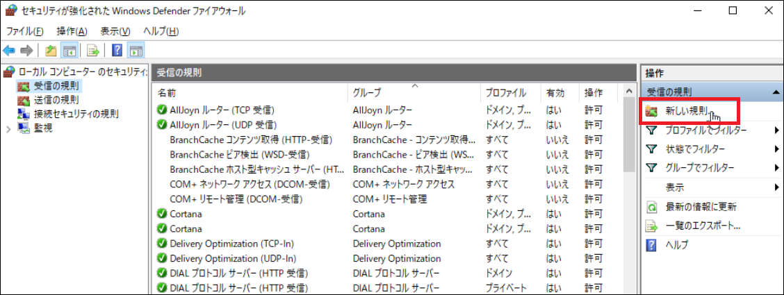 5.新規の受信の規則を追加する例を説明します。