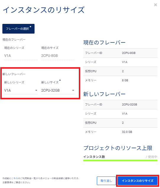 2.7.インスタンスのフレーバーを変更する¶
