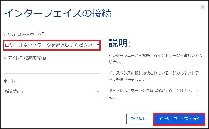 共通機能ゲートウェイ で作成した共通機能ゲートウェイにインスタンスの接続を実施します。2.2.インスタンスへNWインターフェイスを追加する の手順通りに、インスタンスに共通機能ゲートウェイ接続用のネットワークインターフェイスを追加します。