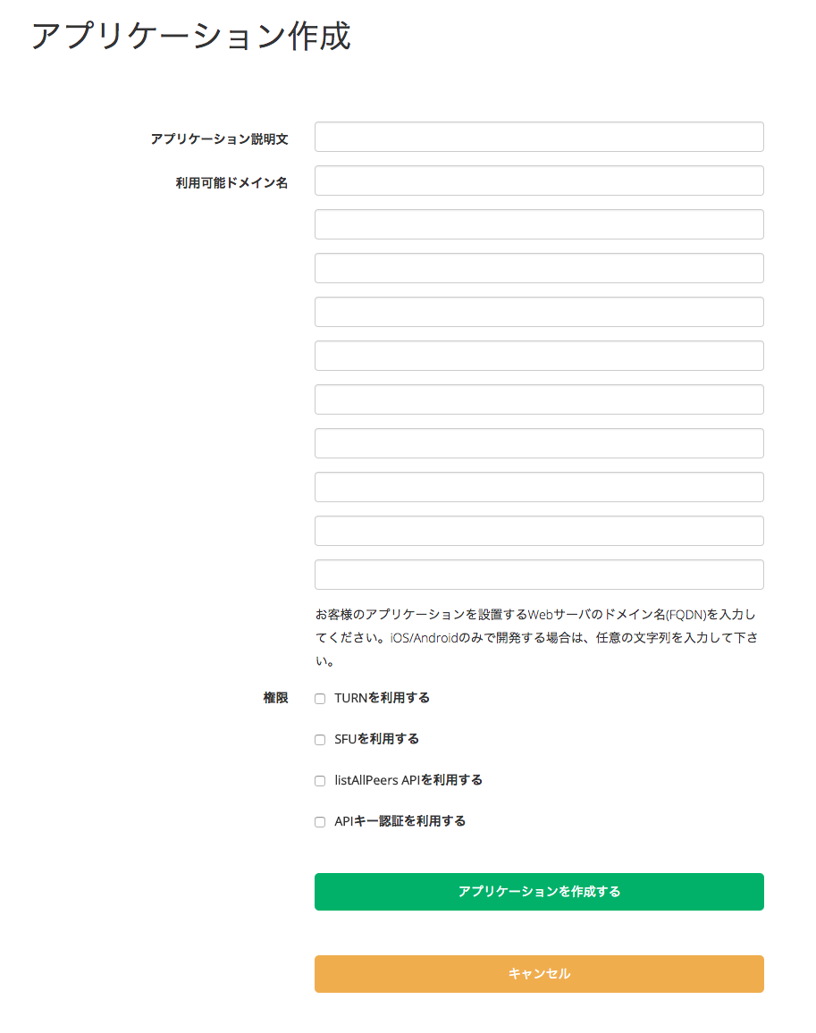 「アプリケーション作成」画面で必要な項目を入力し、「アプリケーションを作成する」ボタンをクリックします。