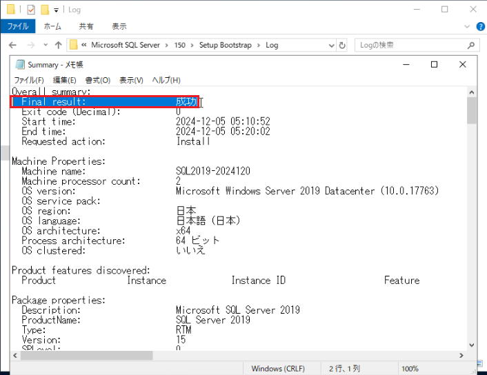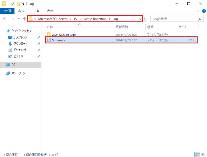 SQL Serverのバージョンに応じたSummary.txtを開く。¶
