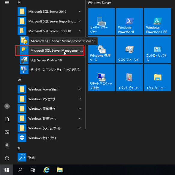 SQL Server Management Studio(SSMS)起動方法を以下に記載します。