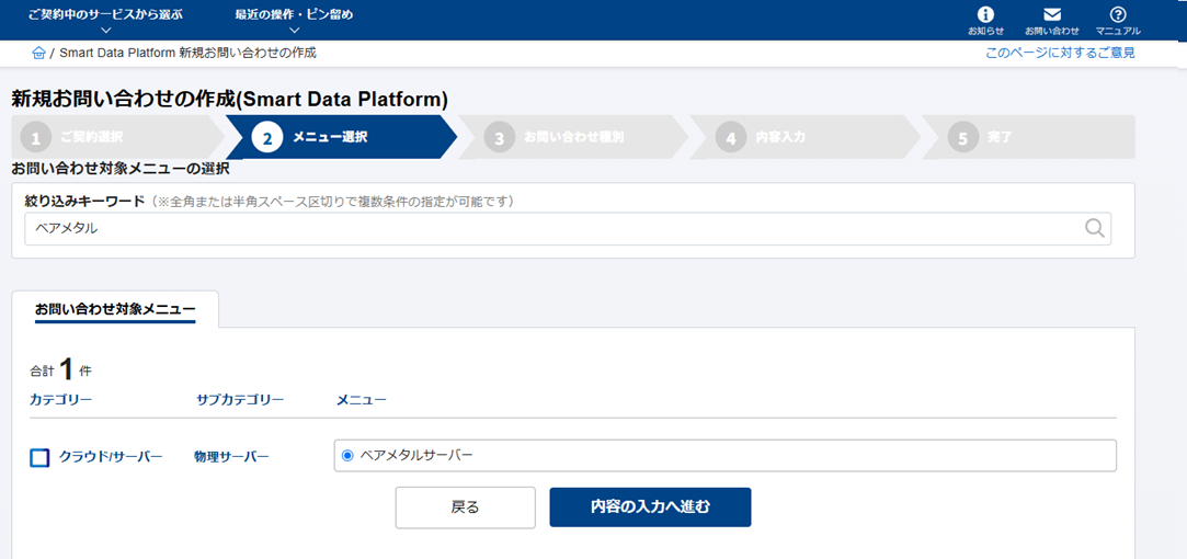 ベーシックプランを利用中のお客様は次のお問い合わせ種別を選択することができます。