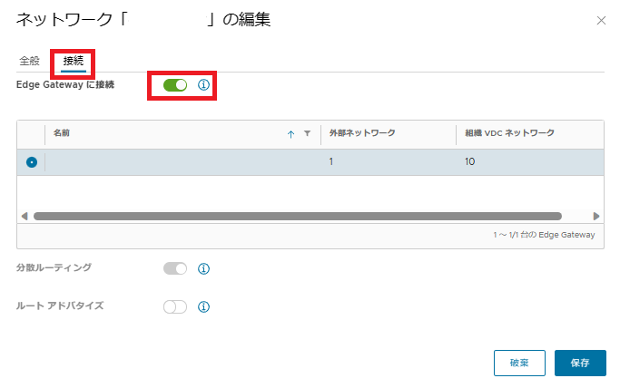 有効にすることでEdge Gatewayに接続され、OvDC内ルーティングが有効になります。