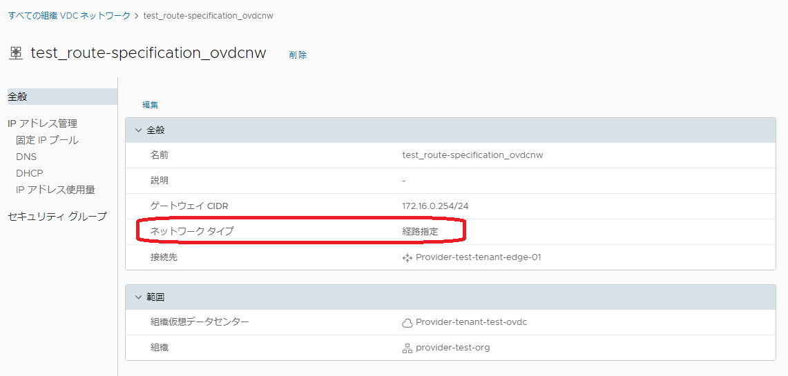 経路指定ネットワークにアクセスできるのは、同じOvDCのみです。