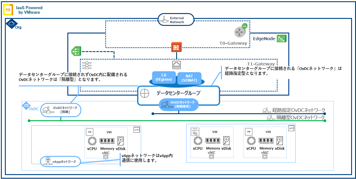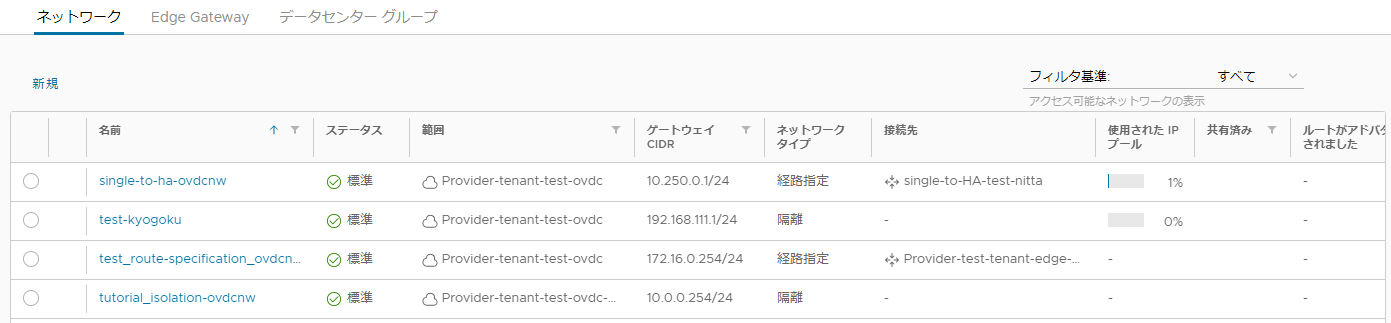 隔離ネットワークにアクセスできるのは、同じOvDCのみとなります。