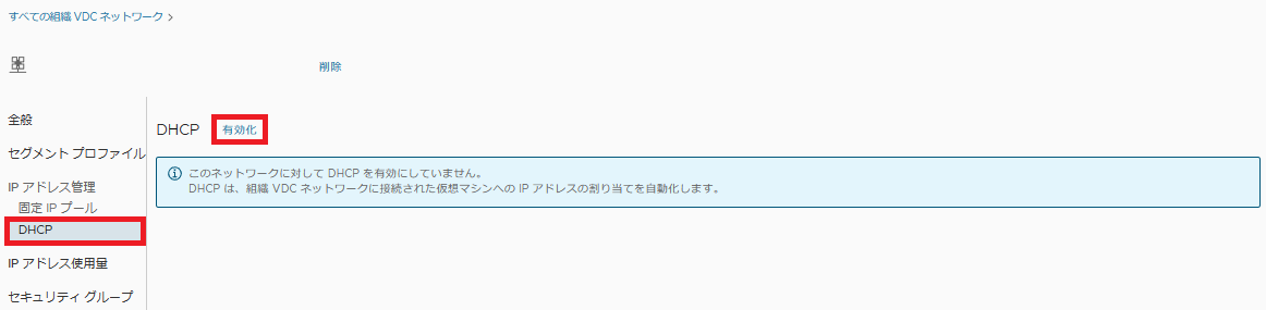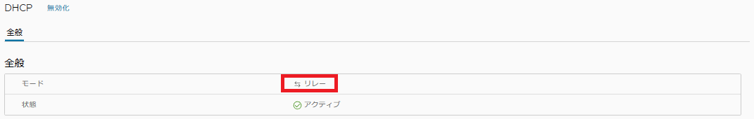- DHCPサービスが不要になった場合は、[DHCP]上部の[無効化]をクリックして下さい。