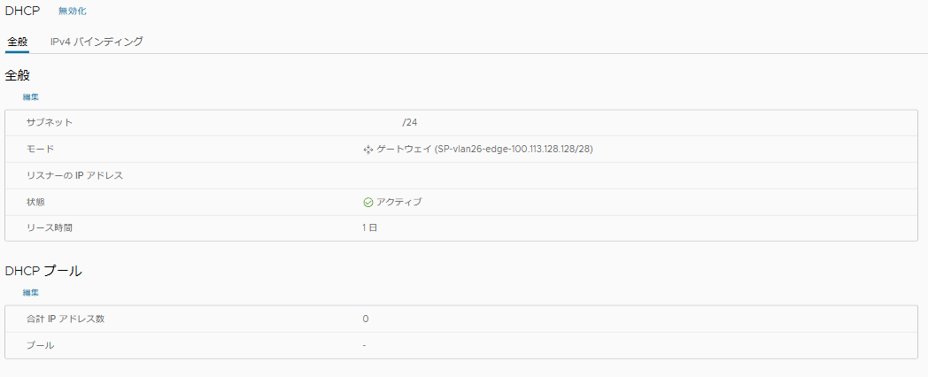 [ゲートウェイ]:EdgeGatewayのDHCPサービスを使用して、DHCP IPアドレスを取得します。