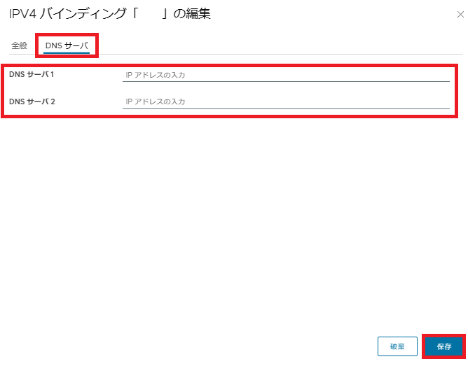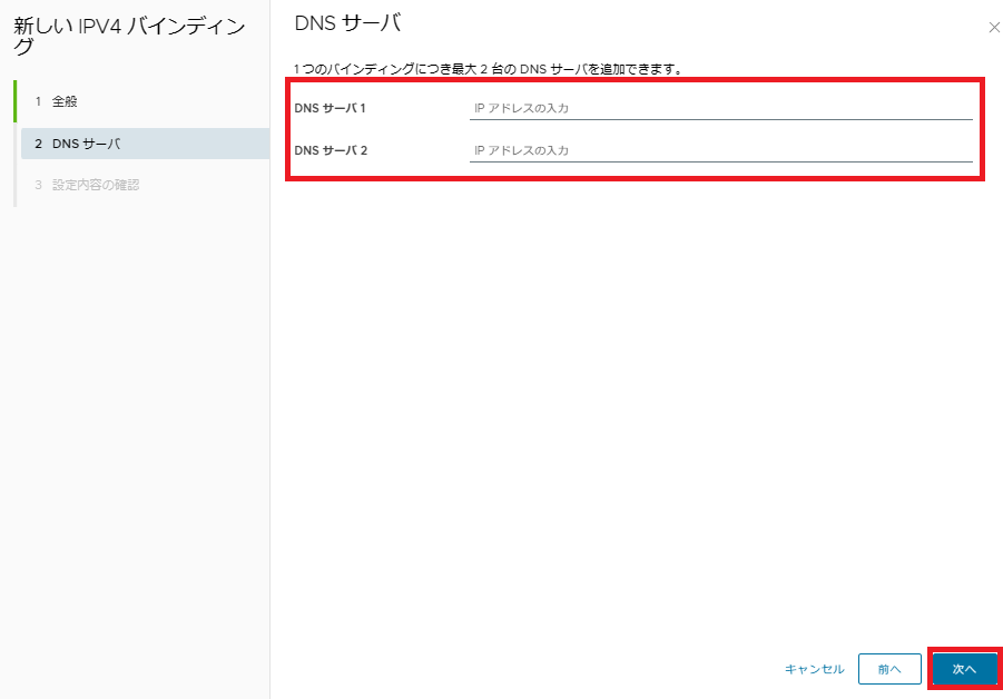 - [2 DNS Servers]にてDNSサーバーを設定します。最大2つのDNSサーバーを追加することができます。