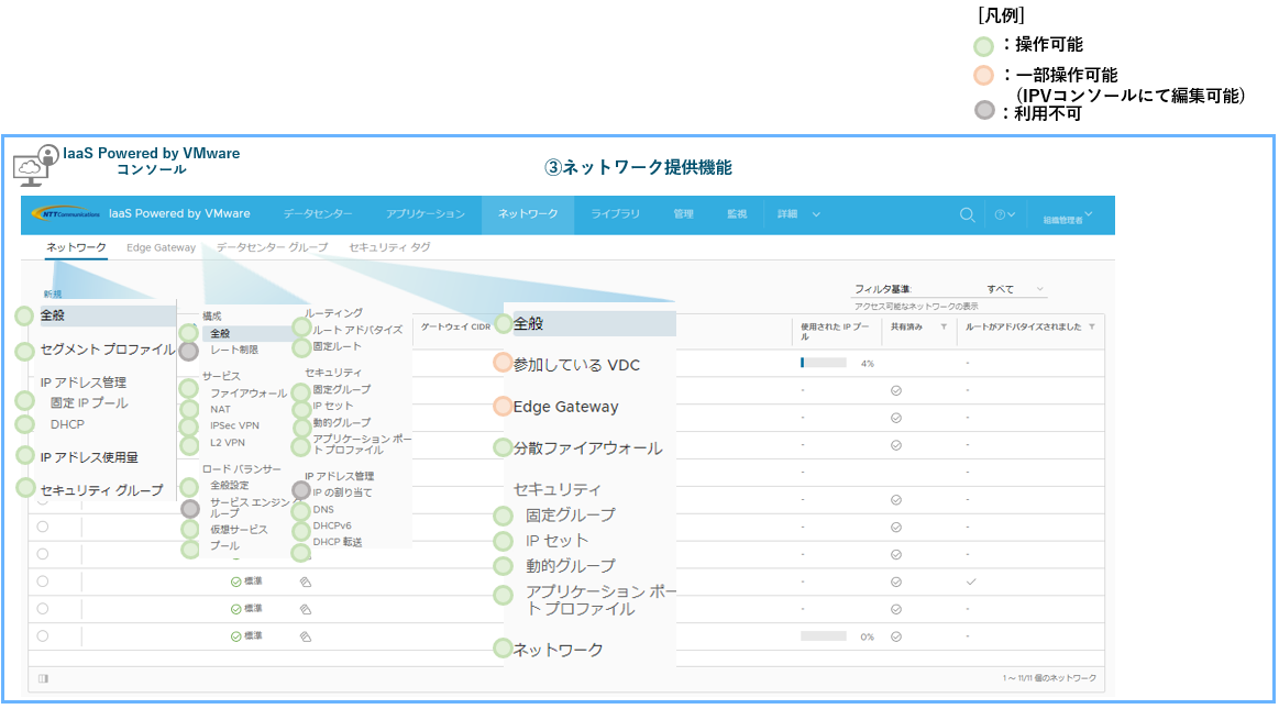 また、ネットワークではファイアウォールならびにロードバランサー機能を提供するEdge Gatewayの操作・管理が行えます。