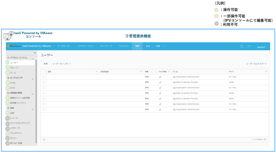 テナントポータルでは、仮想マシンおよびvAppの作成から高度なネットワークの設定、およびIDプロバイダーを用いた二要素認証の実行まで、さまざまなタスクを実行できます。
