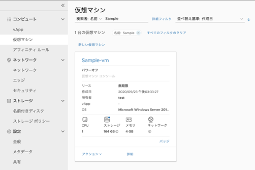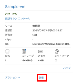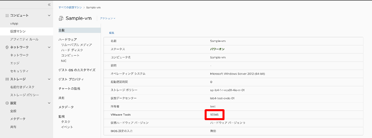 VMware Tools のインストールが終了し、仮想マシンを再起動して変更が有効化されたことを[詳細]のVMware Tools欄から確認します。