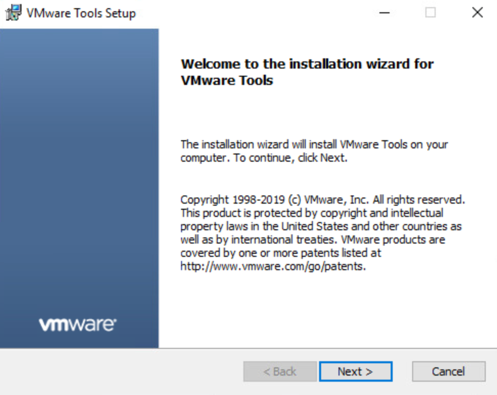 VMware Tools のインストールウィザードが起動したら[Next]を押下します。