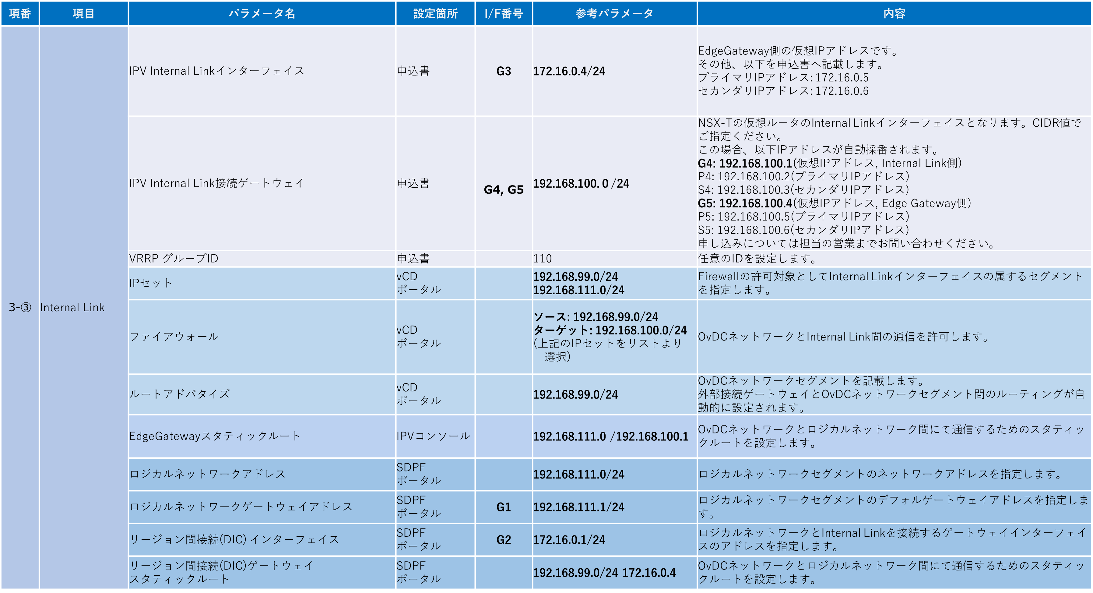 192.168.111.0/24 192.168.100.1 (ロジカルネットワークセグメント宛の通信をInternal Linkゲートウェイへ向ける) |