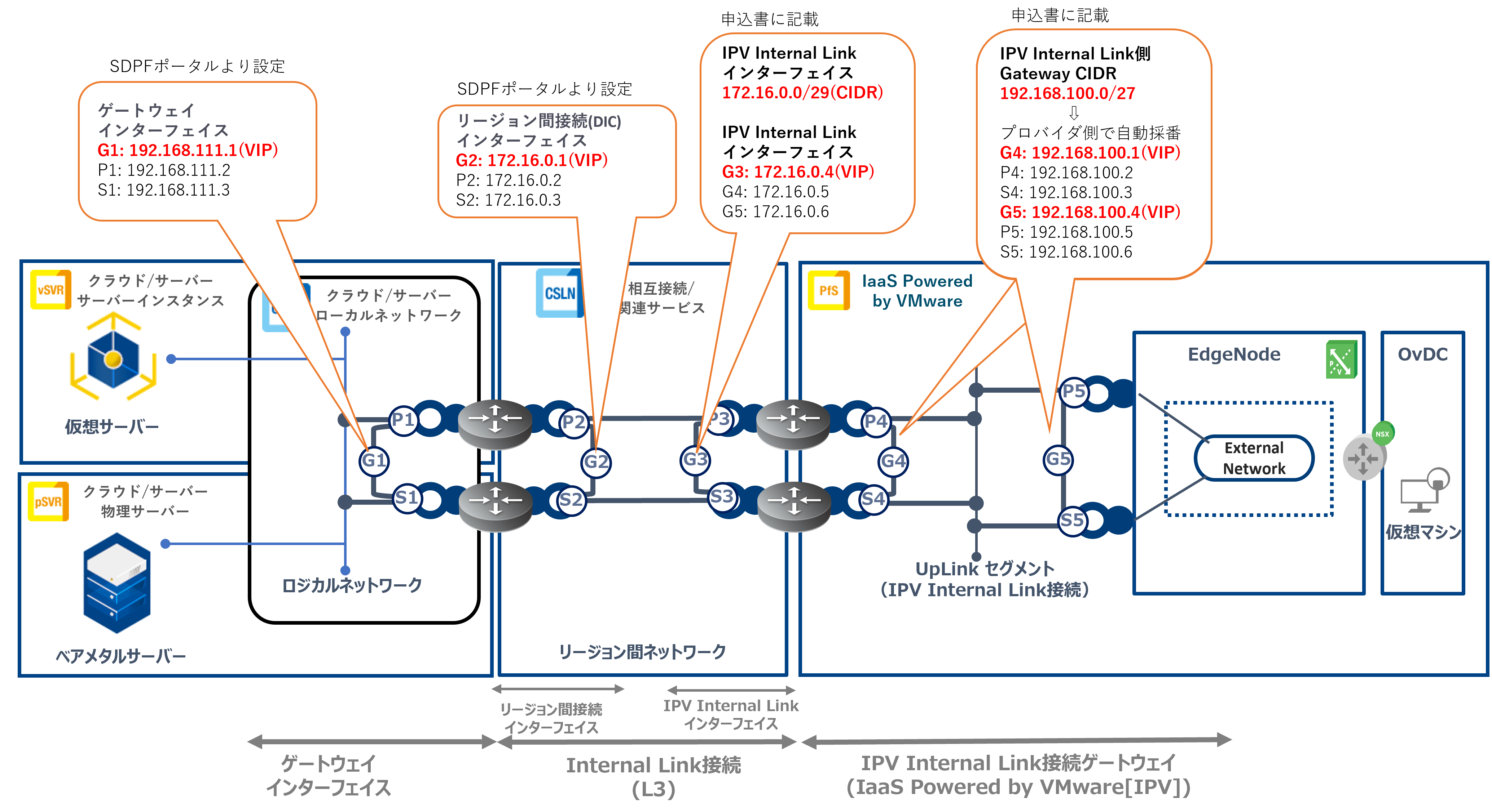 IPV Internal Linkゲートウェイの各インターフェイスIPアドレスは自動採番されます。