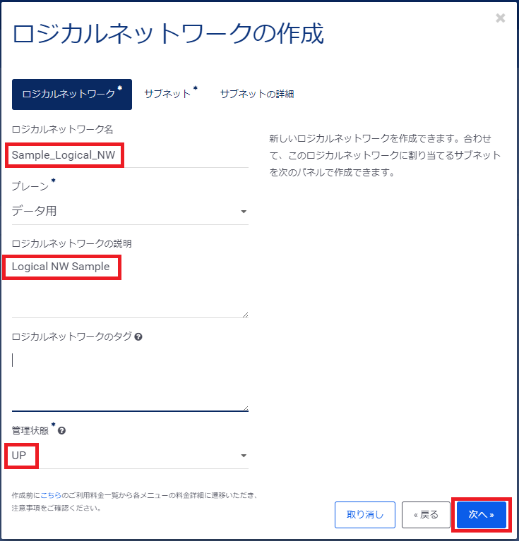 Sample_Logical_NW (本ページ1(2)にて作成したロジカルネットワークを選択) |