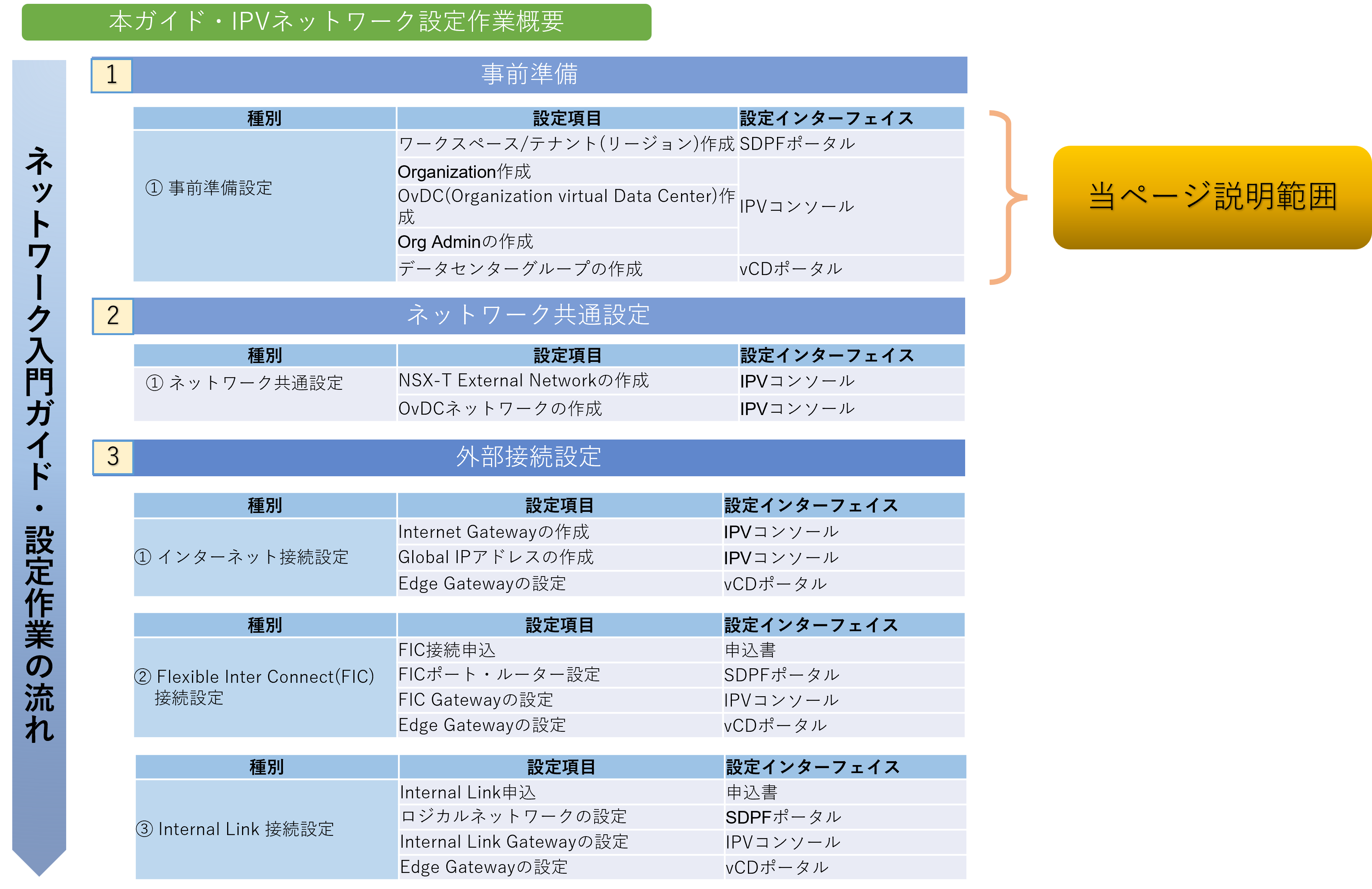 - IPVネットワーク入門設定作業全体の流れおよび当ページの説明範囲
