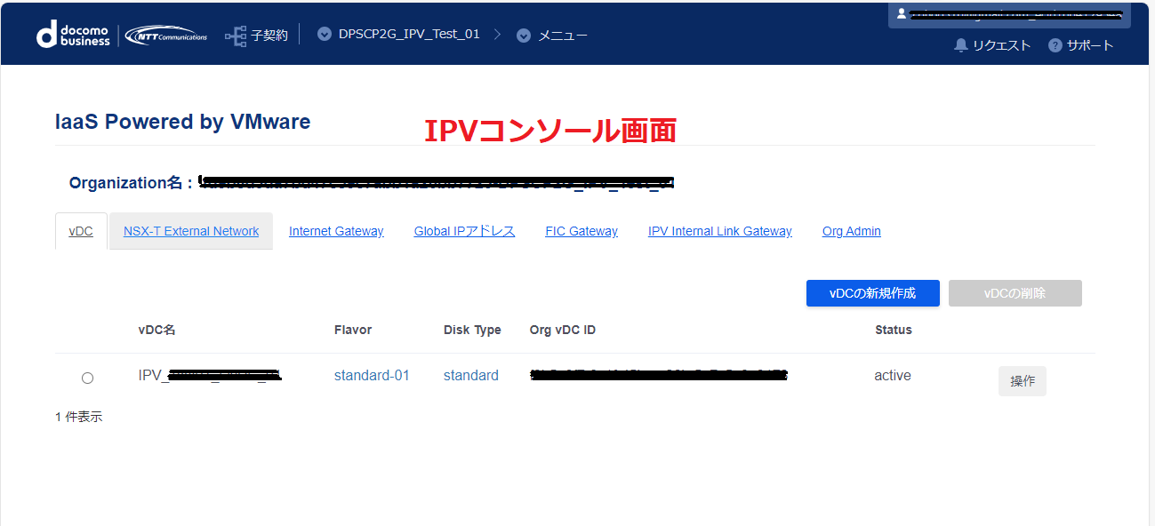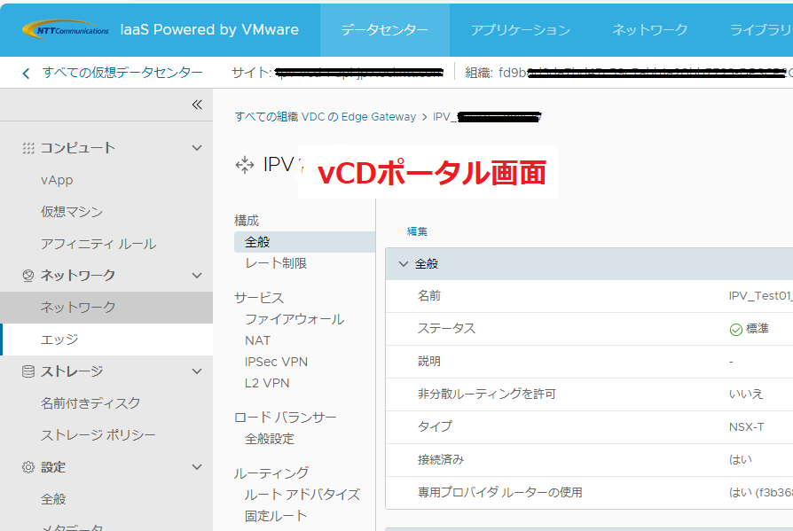 仮想マシン等のリソースが所属するセグメントで、IPVの基本となる組織仮想データセンターネットワーク |