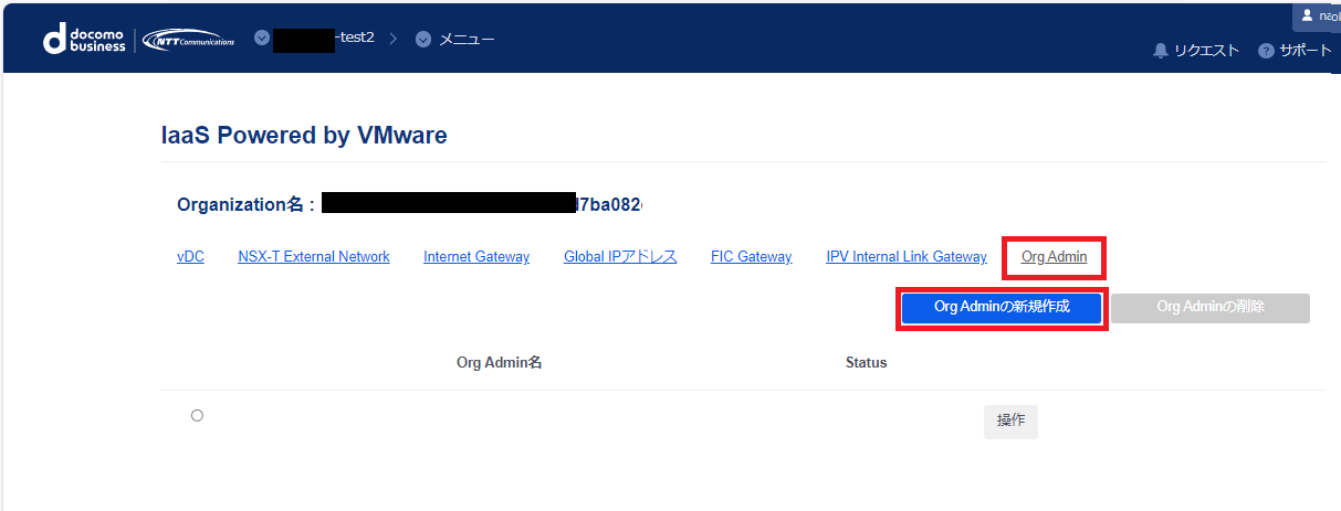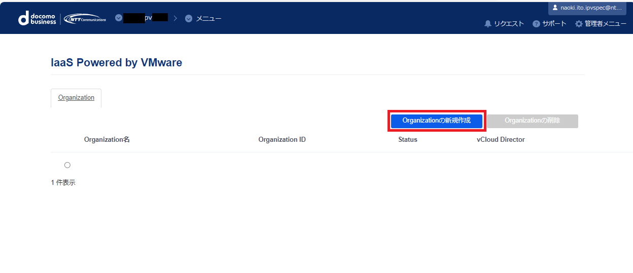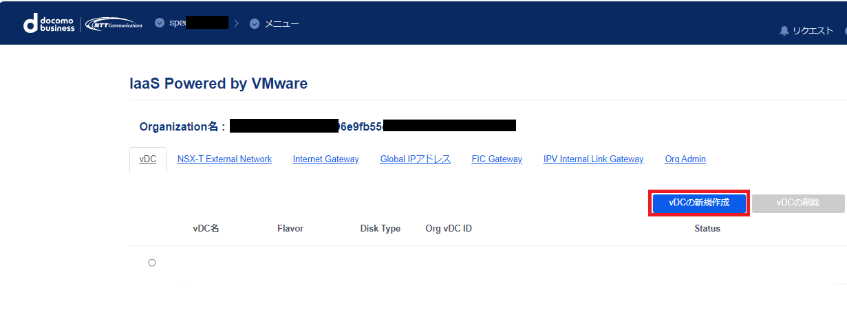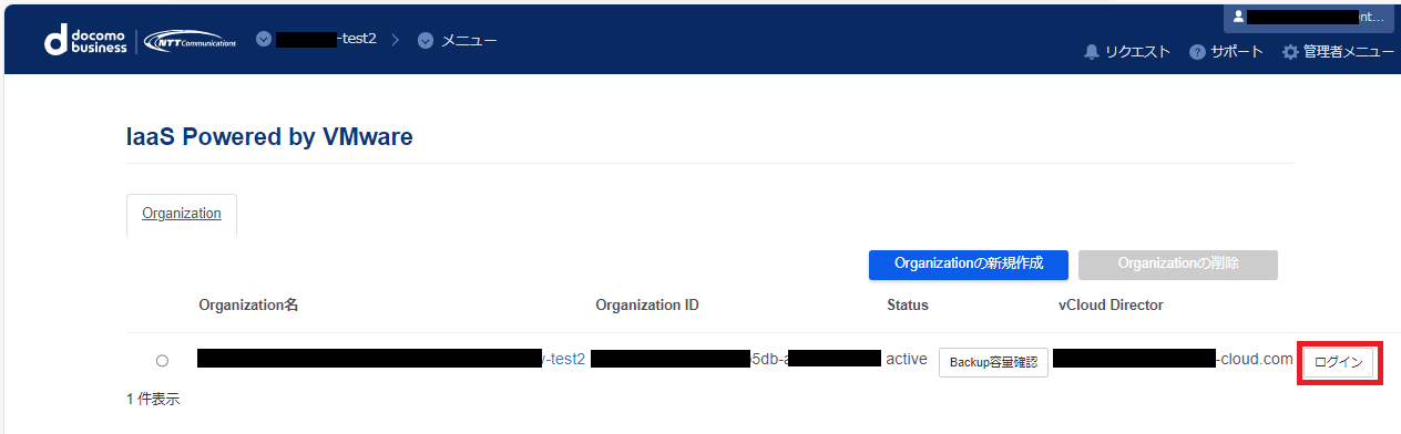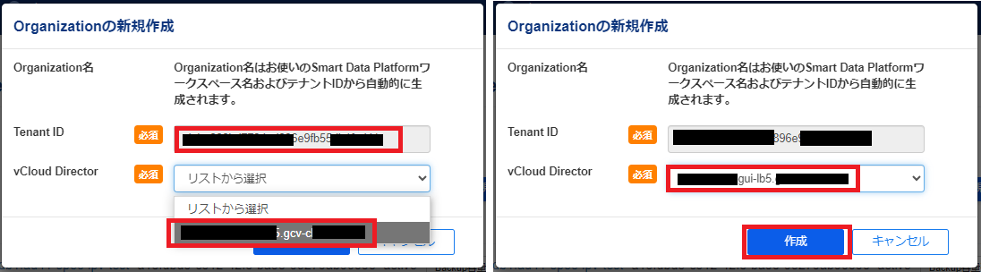 - 利用可能なvCloud Directorをリストより選択し、「作成」をクリックします。