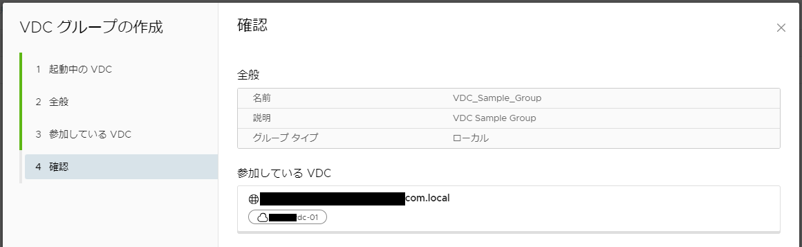 - データセンターグループの詳細を確認し、[完了] をクリック