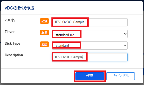 Standard-02(vDCに適用するFlavorをリストより選択) |