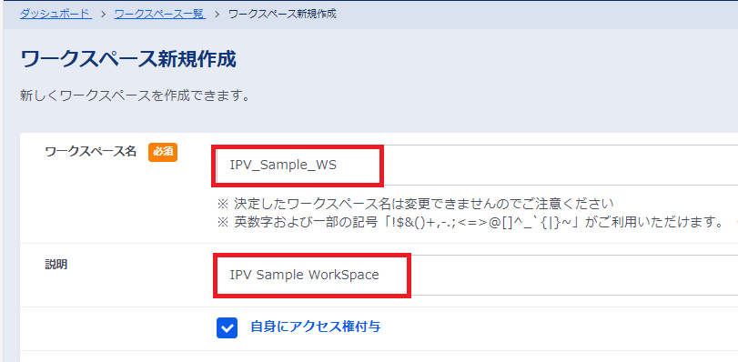 IPV Sample WorkSpace(任意の説明を記載:省略可能) |