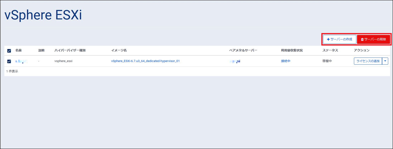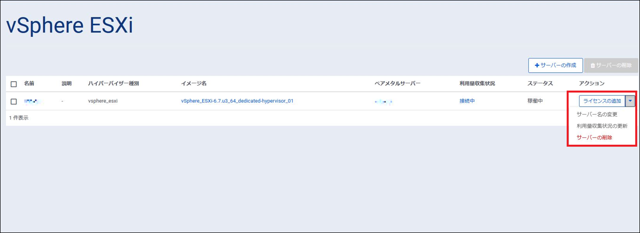 ベアメタルサーバー名を押下することで、ベアメタルサーバーの詳細画面に遷移します。 |