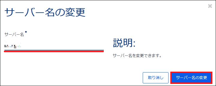 サーバー作成後にサーバー名の変更が可能です。 |