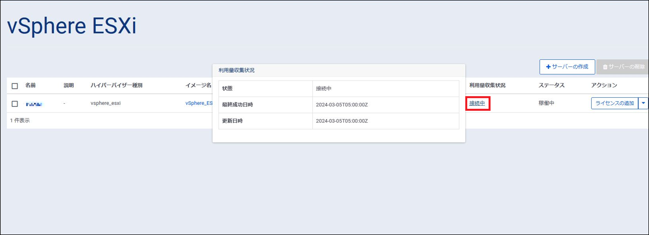 利用量収集状況を押下することで、利用量収集状況がポップアップ表示されます。