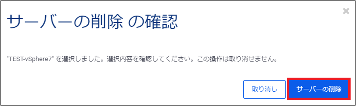 ポップアップにて確認メッセージが表示されますので、確認して サーバーの削除 を実行します。