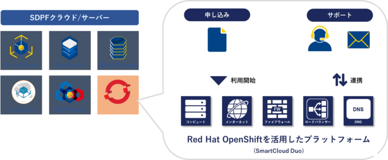 • Red Hat社が提供するエンタープライズ向けKubernetesコンテナオーケストレーションと、NTTコムウェア社が提供する「 SmartCloud Duo」の専有型クラウド環境をバンドルしたメニューです。
